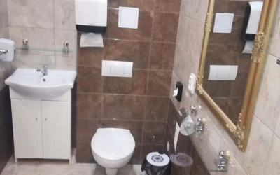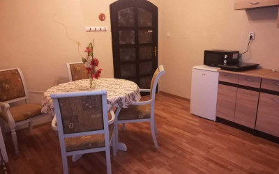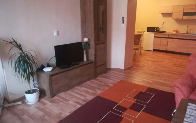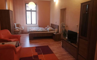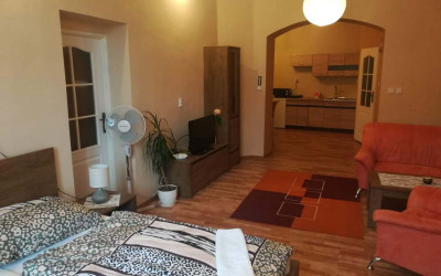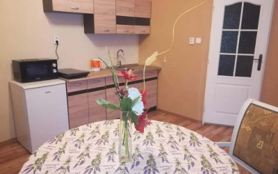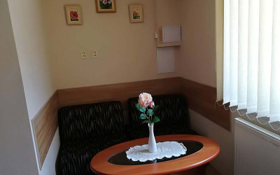 Vybavenie kuchynky chladničkou, mikrovlnkou, indukciou, hriankovačom a riadom Vám umožní prípravu jedál. Pokiaľ nie ste fanúšikom prípravy jedál, do Slovenskej reštaurácie prejdete aj v papučiach. Bagetéria je o poschodie nižšie. Všetko je orientované tak, že napriek tomu, že všetko máte poruke, nebudú vás tu obťažovať žiadne výpary ani hluky z kuchyne, keďže priestory sú samostatné. Vedľajší priestor zaberá priestranná, vkusne zariadená kúpeľňa s WC a veľkým sprchovacím kútom. V ďalšej miestnosti vám chvíle skráti TV pripojený na internet, ktorý môžete sledovať z pohodlia sedacej súpravy. Izba je zariadená novým štýlovým nábytkom. Manželská posteľ má vysoké, pohodlné matrace. Priestranná skriňa, ako aj ostatný nábytok, vkusne dotvára charakter tohto priestoru. Jedno okno je orientované na juh na takmer celú Rázusovu ulicu a druhé priamo na námestie. Nachádza sa tu všetko, čo potrebujete na dlhodobý aj krátkodobý pobyt. Wifi je samozrejmosťou. Hostia majú kľúče od vchodu a apartmánu, brány a vstup si odomykajú elektronicky. Parkovanie vo dvore s kamerami je zdarma.