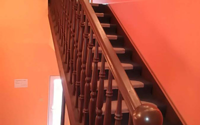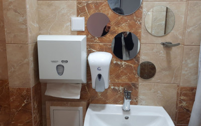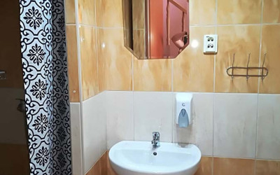 Apartmán 1 sa nachádza na poschodí. Na tomto poschodí sú len dva apartmány. Má vstupnú časť, spaciu časť a toaletu. Vo vstupnej časti je vešiak na odkladanie vecí a na posedenie pri jedle tu slúži stôl. Jednoduchá kuchynka s el. varičom, chladničkou a kanvicou je len doplnkom, nakoľko sa v objekte nachádza Slovenská reštaurácia a Bagetéria. Nie je vybavená na zložité varenie jedál, len na prihriatie, resp. prípravu raňajok. Odtiaľ je vstup do kúpeľne vybavenej sprchovacím kútom, umývadlom a WC. V spálni sú tri samostatné lôžka pripravené na spanie, uteráky, skrinky, sedačka a TV. Matrace sú vysoké a nové. V apartmáne je wifi. Hostia majú kľúče od vchodu a apartmánu, brány a vstup si odomykajú elektronicky. Apartmán má dva malé balkóny na šírku dverí, oba sú orientované na východ, priamo do záhrady. Napriek tomu, že sa apartmán nachádza v centre mesta Brezno, považujeme ho za tichý a vhodný pre pokojný spánok, keďže spáleň je orientovaná do záhrady.
